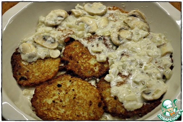 Дорогие друзья, хочу познакомить Вас с старинным украинским блюдом, относящимся к лемковской кухне. Это название происходит от слова "бандура" и на диалекте лемков не что иное как картошка. Это разновидность дерунов, драников залитые сметано-грибным соусом и запечённые в духовке. Это очччень вкусно... и совершенно не сложно!!!