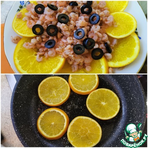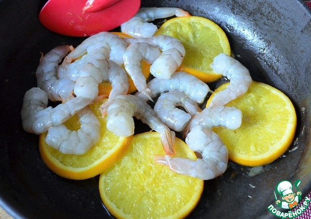 Ингредиенты для «Креветки с жареными апельсинами»: