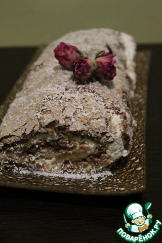 Рецепт «Шоколадный меренговый рулет со взбитыми сливками»: