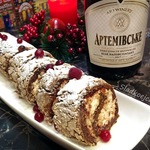 [+5]Делала с небольшими добавлениями, так как мы поклонники контрастности во вкусах. Таким образом, меренгу сначала смазала брусничным соусом (кисло-горьковатый вкус добавила к сладости), а весь рулет сверху посыпала орешками, перемолотыми в блендере (к нежности и мягкости добавила твёрдость).