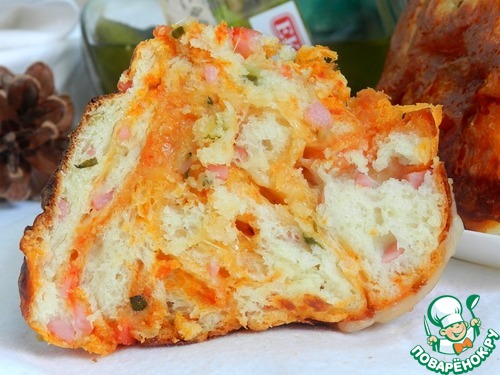 Воздушный дрожжевой кекс с колбасой, маринованными огурчиками и сыром - привычные составляющие в непривычном обличии... Вкусно и красиво!