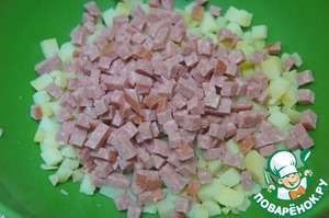 • Добавить нарезанную неольшими кубиками колбаску.