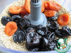 Измельчить 15-20 секунд, добавить чернослив и курагу.