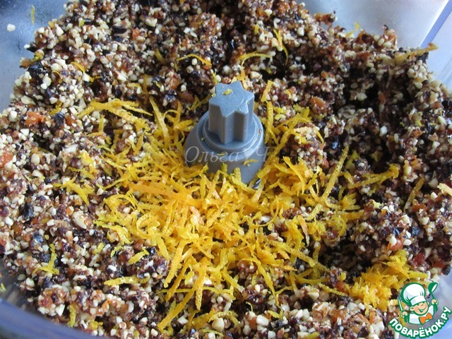 Измельчить еще 15-20 секунд до однородности. Добавить цедру апельсина, перемешать.
