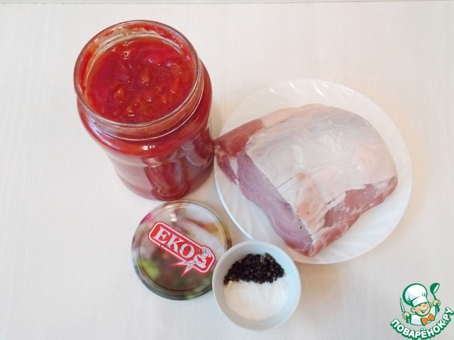 Такая свинина получается очень нежной и сочной. В меру соленая и с тонким ароматом болгарского перца. При разрезе получается с россыпью красных крапинок из перечного соуса, приготовленного из лечо ТМ «ЭКО».