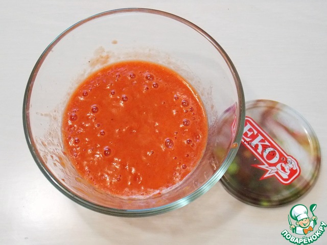 В миску положим лечо и пробьем блендером до однородной массы.