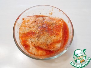 Кладем свинину в миску, смазываем оставшейся перечной массой, солим и перчим. Покрываем и убираем в холодильник на одни сутки.
