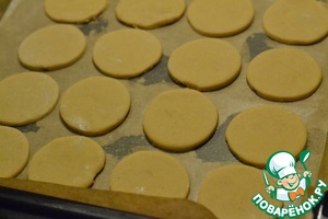 Вырезать кружочки формочкой или стаканчиком, диаметр на ваше усмотрение Выложить на подготовленный противень (простелить бумагой для выпечки). -