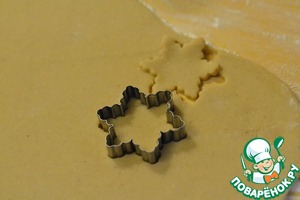Раскатать вторую половину теста и фигурной формочкой вырезать звездочки или снежинки.