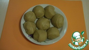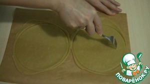 Готовое тесто очень пластичное, практически не липнет к скалке. Тесто делим на 8 частей. Каждую из которых раскатываем на пергаменте, толщиной 2-3 мм.