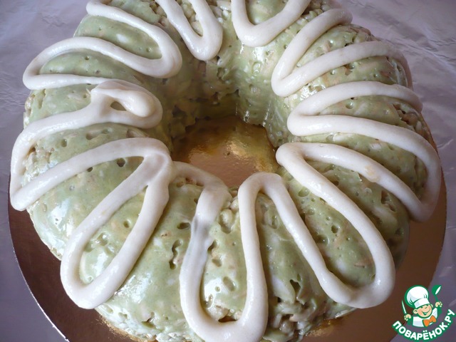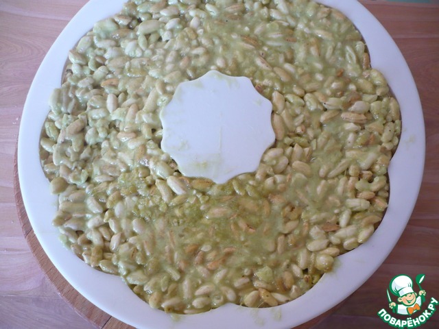 Теперь достаньте рисовое лакомство из холодильника. Форму переверните на приготовленное блюдо.