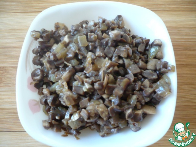 Лук и грибы переложить в миску, чтобы они остыли.