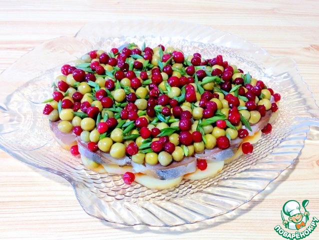 Рецепт «Селедочный салат с горошком и брусникой»: