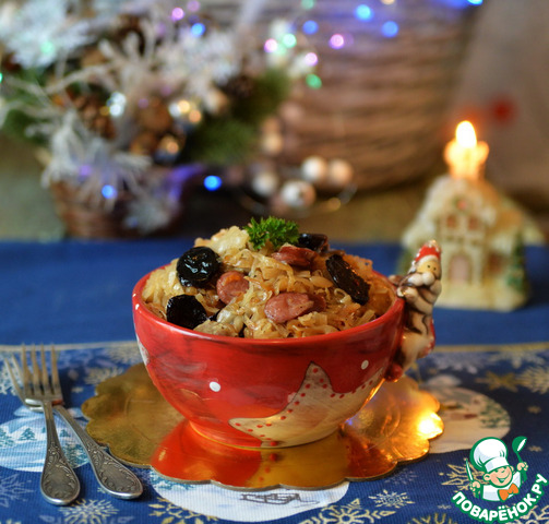 Приготовила по вашему рецепту, с некоторыми изменениями: взяла грудинку подкопченую, колбаски охотничьи, чернослив не добавляла (не любим). Ох, получилось очень вкусно, мой мужчина уплетал за обе щеки