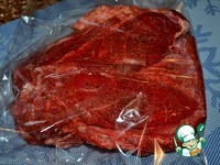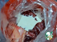 Посолить, тщательно обмазать мясо. Убрать в пакет для запекания.