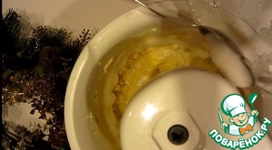 Размягченное сливочное масло растираем с сахаром, куркумой, желтками, лимонным соком и цедрой.