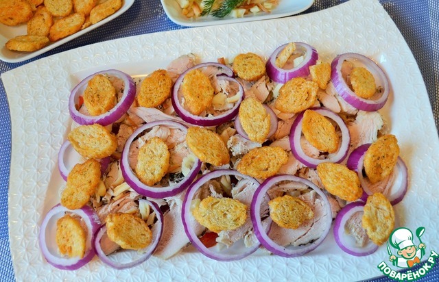 Рецепт «Салат с запечённой курицей и сухариками»: