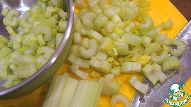 Пока жарится филе - нарезаем стебли сельдерея.