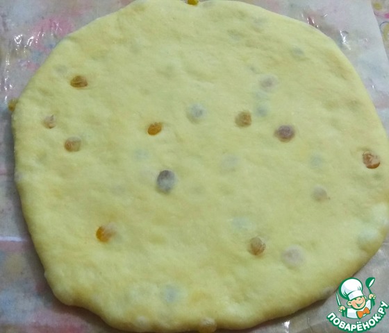 Каждую часть теста раскатать в круг толщиной 2 см. Переложить на пергамент.