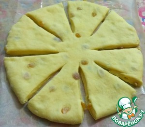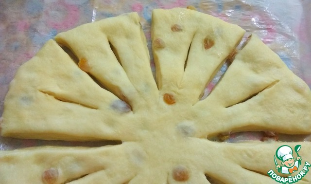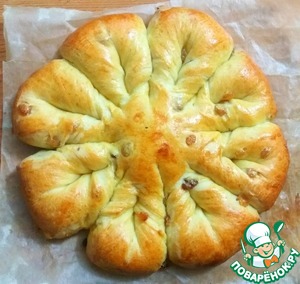 Смазать яйцом, выпекать до легкой румяности 25 минут.