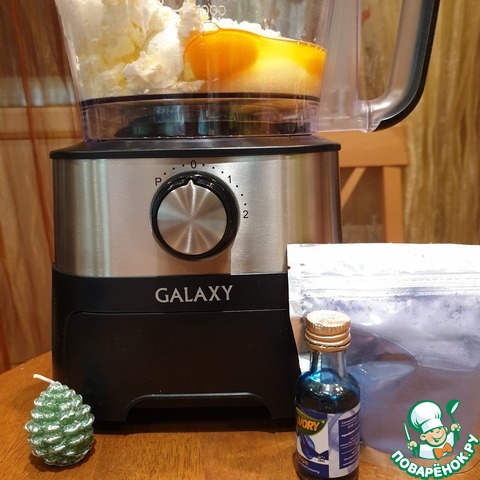 Ингредиенты для чизкейка смешаны до однородности в чаше комбайна GALAXY GL2300