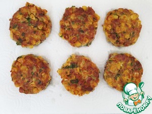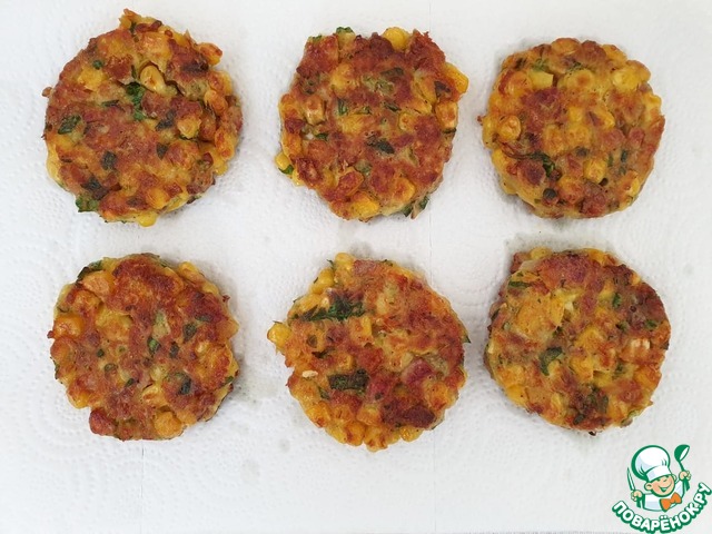 Обжариваем фриттеры с двух сторон на небольшом количестве растительного масла. Готовые фриттеры выкладываем на бумажное полотенце, чтобы убрать излишки жира.