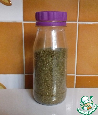 После можно просеять через мелкое ситечко несколько раз. Мы никогда не делаем этого. Готовую приправку аккуратно перемешать и выложить в банку с плотной крышкой. Оставить на сутки. Все!!!