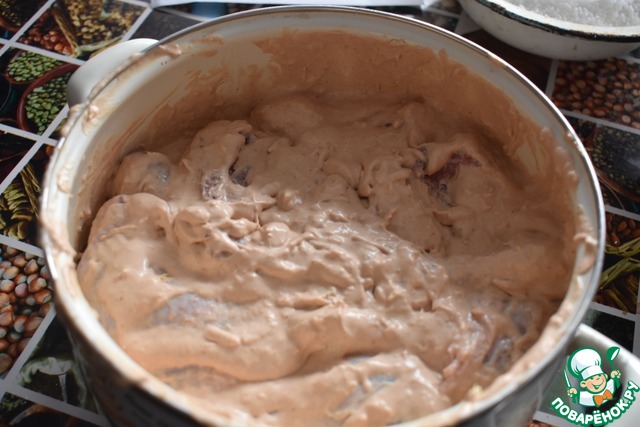 Остаток маринада развести пивом, бульоном, вином или водой до состояния не густой сметаны.