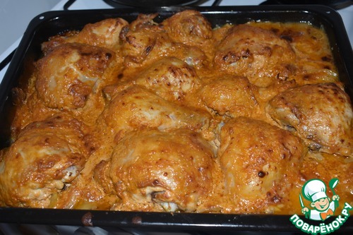 Девочки и мальчики, для своего последнего рецепта в конкурсе я выбрала свой самый любимый рецепт маринада для курицы. Этот маринад отлично подходит для мангала. Пользуюсь я им очень давно. Рецепт спрашивают всегда. Надеюсь и Вам он придется по душе. Этот рецепт очень удобен для праздничного застолья. В нем гарнир и курица запекаются на одном противне под ароматнейшим соусом. Получается отменно. Заходите, угощайтесь.