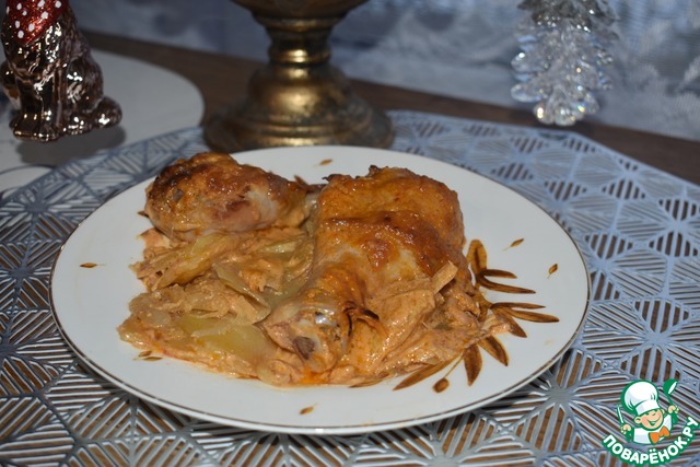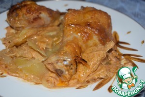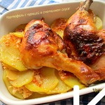 Ну а в сочетании с картошкой, томлённой в курином соке с маринадом, оторваться, совершенно невозможно! Не от курицы не от картошки!