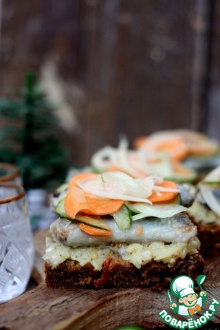 На кусочек вкусного хлеба уложить слой соуса