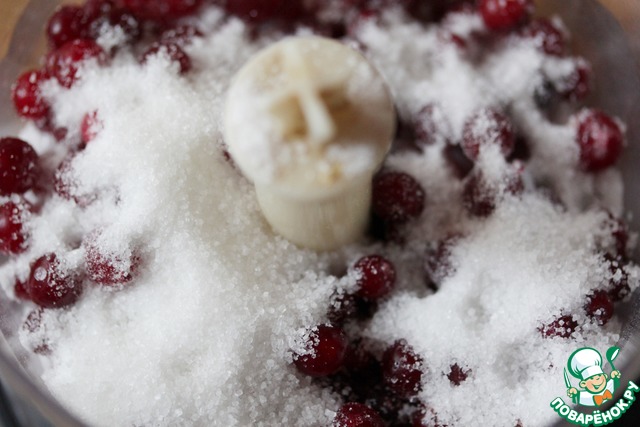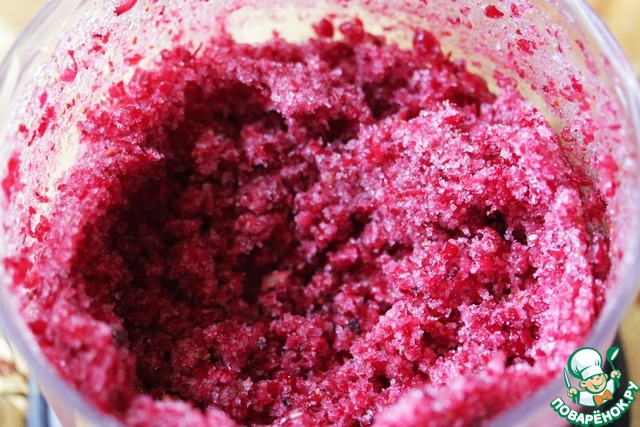 • Для начинки ягоды измельчить вместе с сахаром до желаемой консистенции.