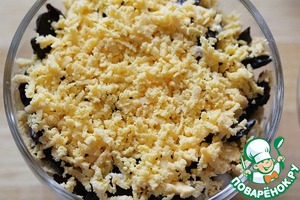 На слой чернослива выложить желток, натертый на мелкой терке.