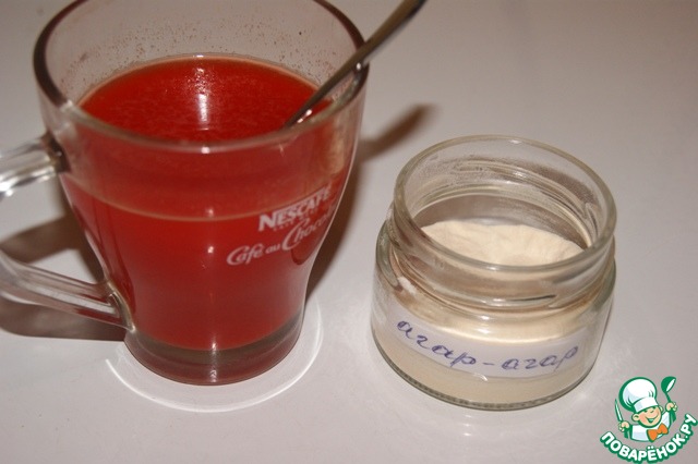 Работать нужно быстро, так как смесь сока и агар-агара быстро застывает.