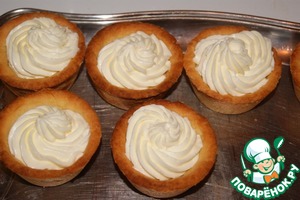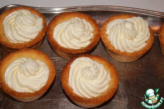 В корзиночки из песочного теста отсадить по 10 г курда. Ссылку на рецепт лимонного курда я дам ниже. -