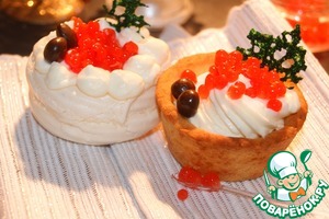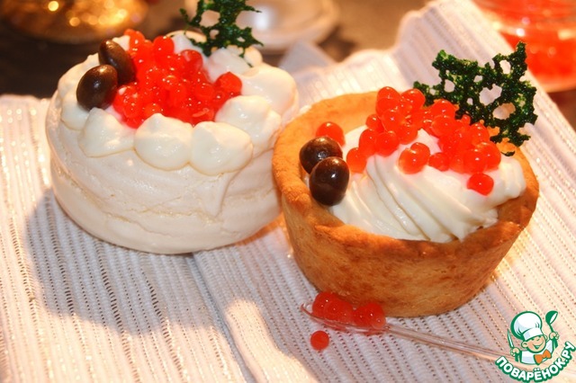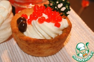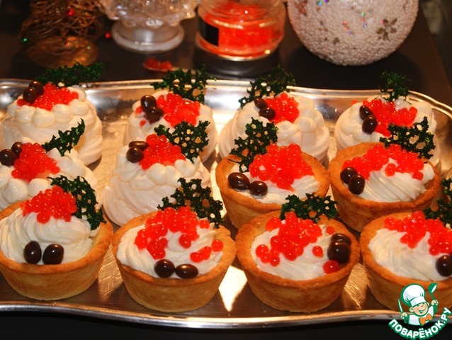 Корзиночки из песочного теста (pate sucree) - нежные, хрупкие и ароматные... и корзиночки-безе из французской меренги, а еще - лимонный курд и творожно сливочный крем - это очень вкусно! Украшением служит "икра" из апельсинового фреша, кружевной чипс и "маслины" из апельсиновой цедры в шоколаде. Замечательный новогодний десерт порадует и детей и взрослых не только своим вкусом, но и видом, а также поднимет праздничное настроение! Приготовить основные составляющие для десерта можно заранее, а собрать в день Праздника.
