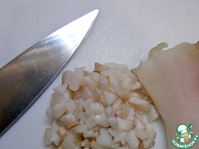 Мелко нарезать сало.