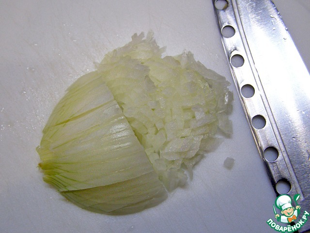 Очень мелко нарезать лук.