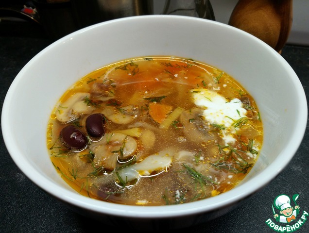 Рецепт «Щи с фасолью и шампиньонами быстро»: