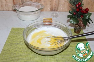 В сметану добавляем сахар и хорошо перемешиваем.