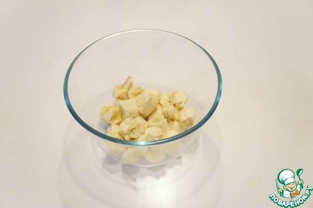 Бананы поломайте на кусочки и разомните вилкой. Не обязательно до однородной массы.