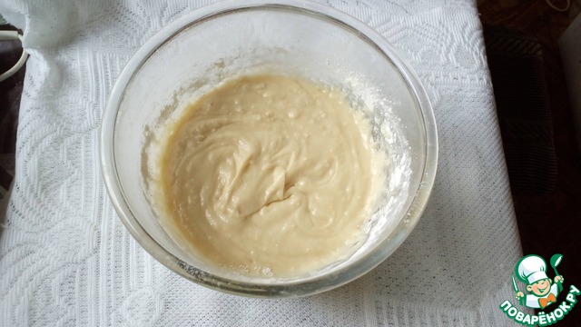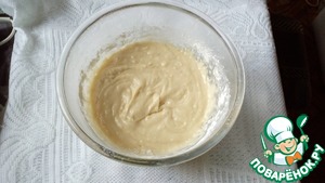 • Продолжая взбивать, вливаем масло со сметаной и содой.