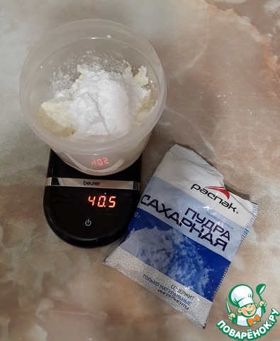 - Сахарная пудра (можно меньше, можно больше) — 40 г