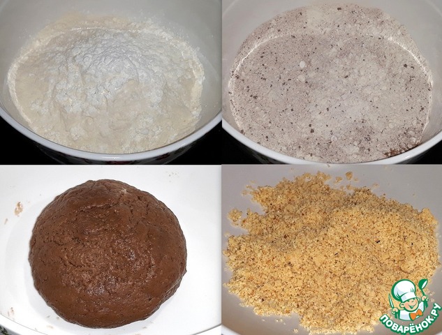 какао, соль, разрыхлитель. Яйцо взбила с сахаром,