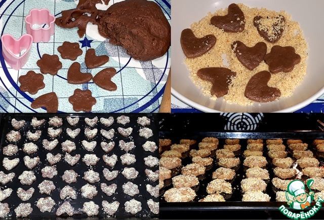 Печенье с какао и корицей в ореховой панировке. Очень вкусное и ароматное. Печенье пекла для встречи с давней подругой.