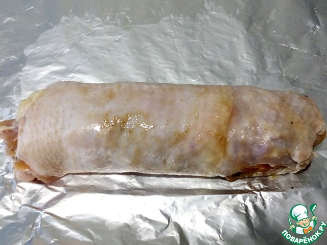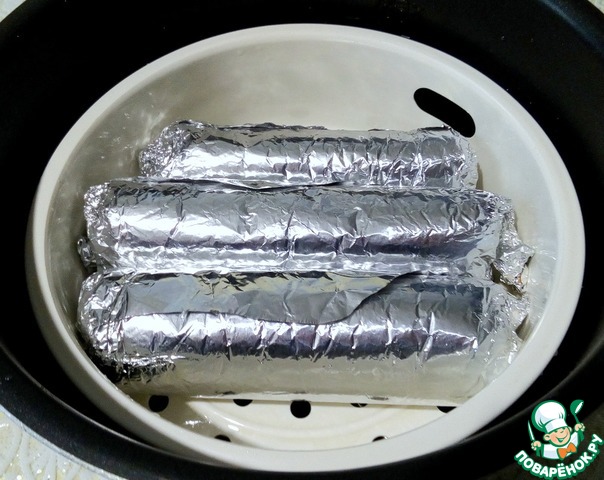 Сворачиваем в рулет, затем плотно в фольгу.