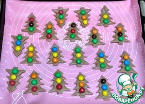 Украсить конфетами m&m's. Выпекать в духовке, заранее разогретой до 180 гр., 10 мин.