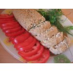 Готовый рулет нарезать ломтиками и подать с чёрным хлебом.