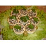 Заполняем тарталетки нашим паштетом, украшаем петрушкой и подаём.