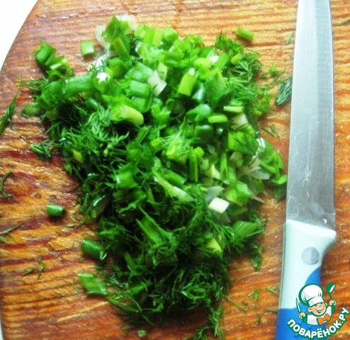 Мелко нарезать зелень укропа и зеленый лук, перемешать.